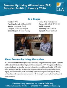 Community Living Alternatives (CLA) partners with case managers to provide individualized residential and day supports for adults with intellectual and developmental disabilities across the Denver metro area. We work collaboratively with case managers, families, and support teams to support continuity of care, clear communication, and person-centered planning.